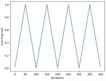 在 [2] 中,Leslie 提出了一种“Triangular”的方法,在每次迭代之后,学习率都会重新开始。
