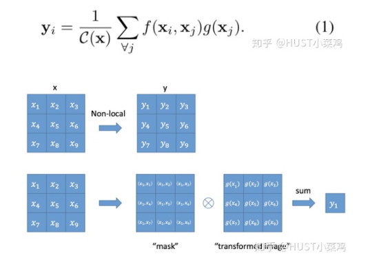 文章定义的对于神经网络通用的Non-Local计算如下所示: