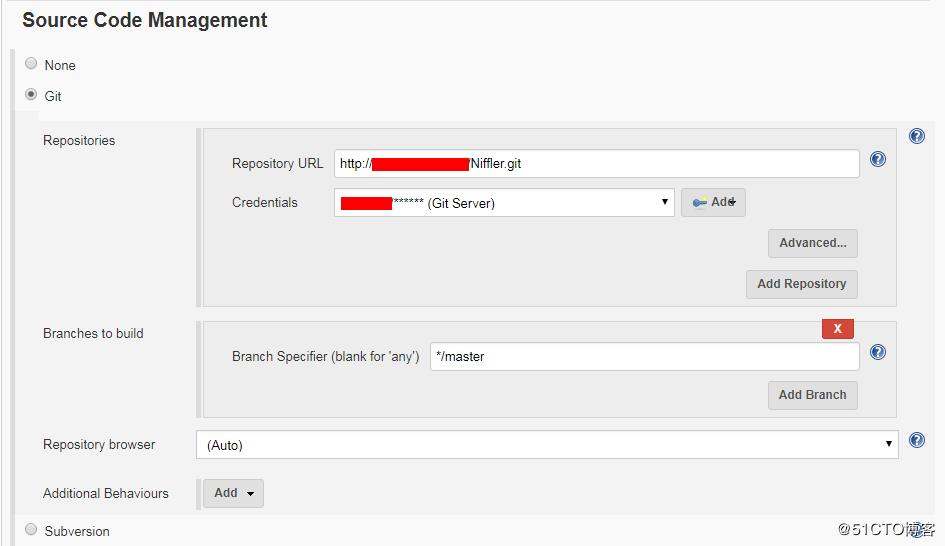 源码管理部分,这里就是架构图中的gitlab保存的项目配置文件,gitlab可以在Rancher的Catalog中进行安装,在gitlab中创建一个项目,创新用户有相对应的权限。Jienkins添加gitlab账户。