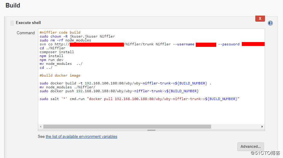 整套流程,没有实现如何回滚到上一版本的方法,其实这个也容易,就是在③步的svn代码checkout那步加上带版本号的命令行即可。