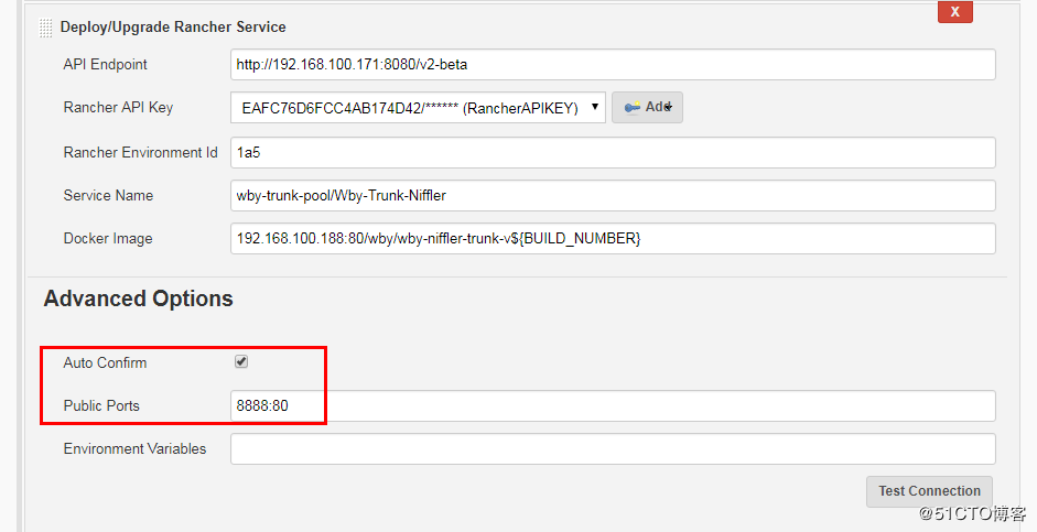 Rancher 插件的配置部分,其中API Endpoint、Rancher API Key和Rancher Enviroment Id