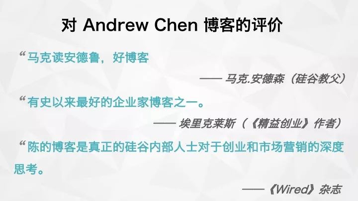 最近关注了一批硅谷的增长大牛,Andrew Chen 是其中之一。看了他的 blog 收获多多,总结了8点知识模块干货,分享给大家。