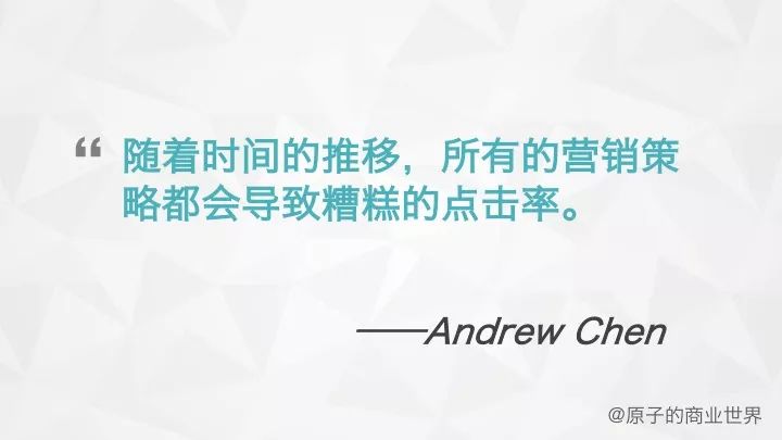 但是大家并不必担心,因为新的营销渠道也在不断被发现,而这些新渠道往往表现更好。因此,想真正克服“ 糟糕点击率法则”,最有效的方法就是不断挖掘新的营销渠道。