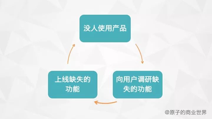 当你问用户“你觉得什么功能缺失?”时,就完全是用户导向而非有一个产品前瞻了,而这是个重大的错误。