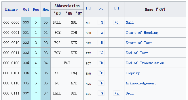 | Value | Char | Value | Char | Value | Char | Value | Char | |||
