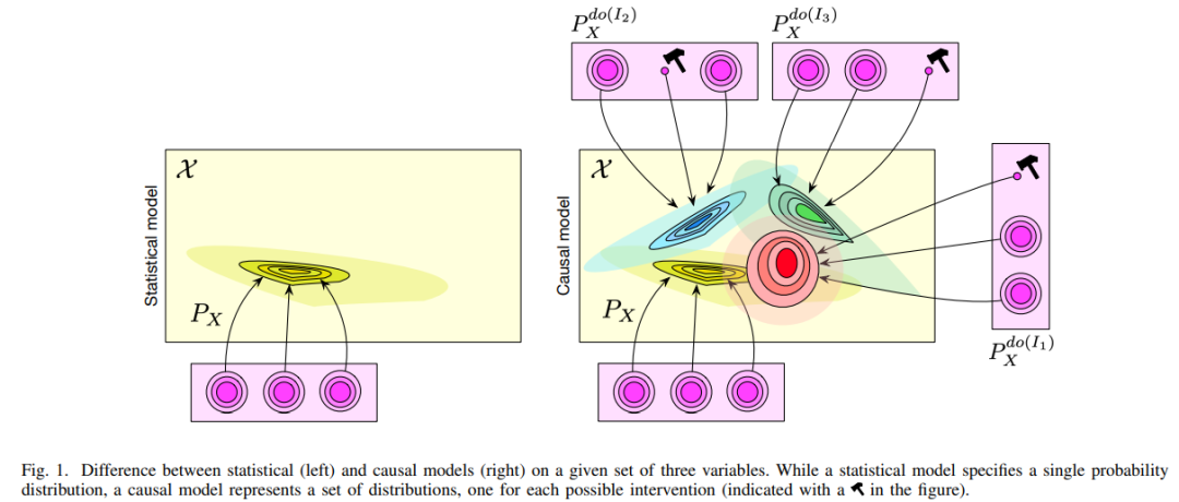 上文所有讨论都需要一种不依赖常见 i.i.d. 假设的学习范式。研究者希望做出一种较弱的假设:应用模型的数据可能来自不同的分布,但涉及的因果机制(大多)相同。