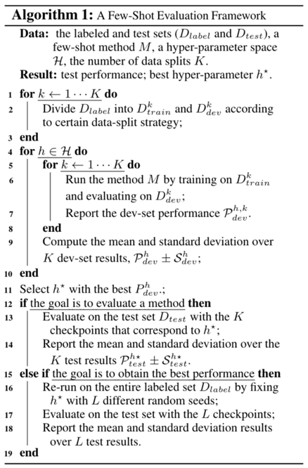 (1)提出一个新的小样本自然语言理解评价框架 FewNLU,并且从三个关键方面(即测试集小样本学习性能、测试集和验证集相关性、以及稳定性)量化评估该评价准则的优势。
