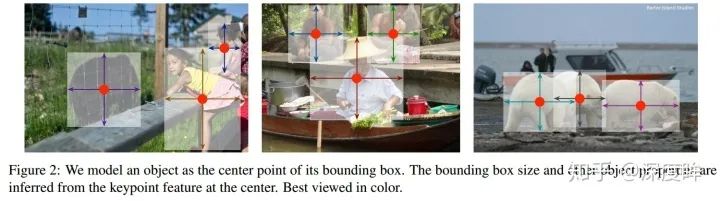 centernet也是非常流行的anchor-free论文,其核心是:一些场景的cv任务例如2d目标检测、3d目标检测、深度估计和关键点估计等等任务都可以建模成以物体中心点学习,外加上在该中心点位置处额外学习一些各自特有属性的通用做法。对于目标检测,可以将bbox回归问题建模成学习bbox中心点+bbox宽高问题,如下所示: