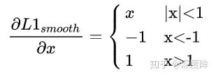 原始的faster rcnn的rcnn head,使用的回归loss是smooth l1,作者认为这个依然存在不平衡。作者分析是:loss解决Classification和Localization的问题,属于多任务loss,那么就存在一个平衡权重,一般来说回归权重会大一些,但一味的提高regression的loss其实会让outlier的影响变大(类似于OHEM中的noise label),outlier外点样本这里作者认为是样本损失大于等于1.0,这些样本会产生巨大的梯度不利于训练过程,小于的叫做inliers。平衡回归loss的目的是既不希望放大外点对梯度的影响,又要突出内点中难负样本的梯度,从而实现对外点容忍,对内点区分难负样本的作用。为此作者在smooth l1的基础上进行重新设计,得到Balanced L1 Loss。核心操作就是想要得到一个当样本在 附近产生稍微大点的梯度的函数。首先smooth l1的定义如下: