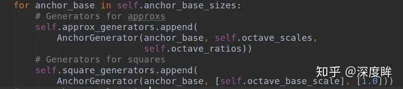 可以明显发现approx_generators是每个位置9个anchor,而square_generators每个位置是1个anchor,且是正方形。为了方便区分,你可以认为squares_list存储的就是每一层的还原基数而已,和anchor没啥关系的,只不过可以等价实现而已。而guided_anchors_list其实就是在squares_list基础上结合loc预测和shape预测得到的动态anchor,用于训练原始的retinanet的分类和回归分支。而如何利用squares_list、loc_pred和shape_pred得到最终的动态anchor,做法非常简单,如下所示(测试阶段也是这个流程):