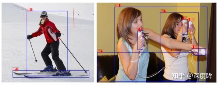 center-ness作用比较大,从上面的正负样本定义就可以看出来,如果没有center-ness,对于所有正样本区域,其距离bbox中心不同远近的loss权重居然是一样的,这明显是违反直觉的,理论上应该越是远离Bbox中心的空间位置,其权重应该越小,作者实验也发现如果没有center-ness分支,会产生大量假正样本,导致很多虚检。center-ness本质就是对正样本区域按照距离gt bbox中心来设置权重,这是作者的做法,还有很多类似做法,不过有些是在Loss上面做文章,例如在ce loss基础上乘上一个类似预center-ness的权重来实现同样效果(例如Soft Anchor-Point Object Detection)。center-ness效果如下: