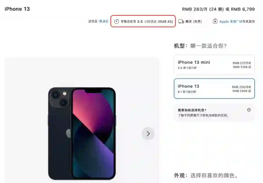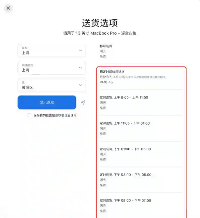 此外,苹果官网还推出了“定时送货”服务,用户可选择商品的预计送达时间,此项服务免费提供。