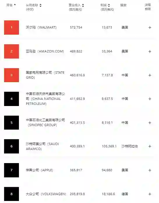 今日,《财富》杂志发布一年一度的重磅榜单——2022 年财富世界 500 强榜单。沃尔玛连续第 9 年成为全球最大公司,亚马逊上升至第 2 位,中国的国家电网公司位居第 3 位,中石油、中石化分别位居第 4、第 5 位。另外,华为位居第 96 名,小米集团登榜第 266 名,较 2021 年提升 72 名。值得一提的是,今年比亚迪首次进入《财富》 500 强榜单,其位居 436 名。