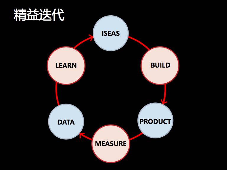 所谓精益方法的核心就是构造这样的反馈,通常的反馈会有三个步骤:一个是 build,第二个是 measure,第三个是 learn。build就是构造一个系统;measure 就是把这个系统放到现实中去检查,看看跟预想的有多大的差距。measure之后,得到一些数据,再进行分析,分析结果再反馈到系统里头。