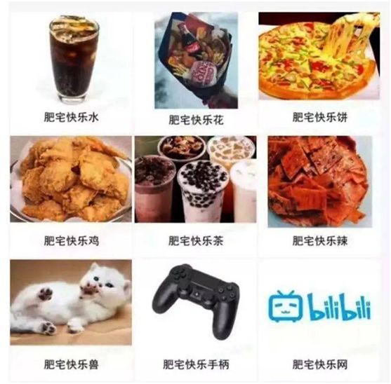 可乐变成了“肥宅快乐水”,炸鸡变成了“肥宅快乐鸡”,奶茶变成了“肥宅快乐茶”,猫变成了“肥宅快乐兽”......