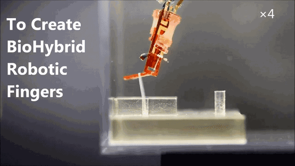 试验中所使用的组织不是来自于生物体提取,而是来自实验室的培育。换句话说,是从零开始培育肌肉、而不是摘取在动物体内长出的肌肉。研究人员通过含实验鼠骨骼肌细胞的溶液制作出长方形的肌肉薄片,在十天时间里,肌肉会在骨骼上慢慢生长,再叠加薄片培育出长约8毫米的肌肉组织。再将肌肉组织安装在手指形的树脂骨骼两面,制成了这个全长近3厘米的手指机器人。这些肌肉纤维能在10毫牛的力量下收缩。