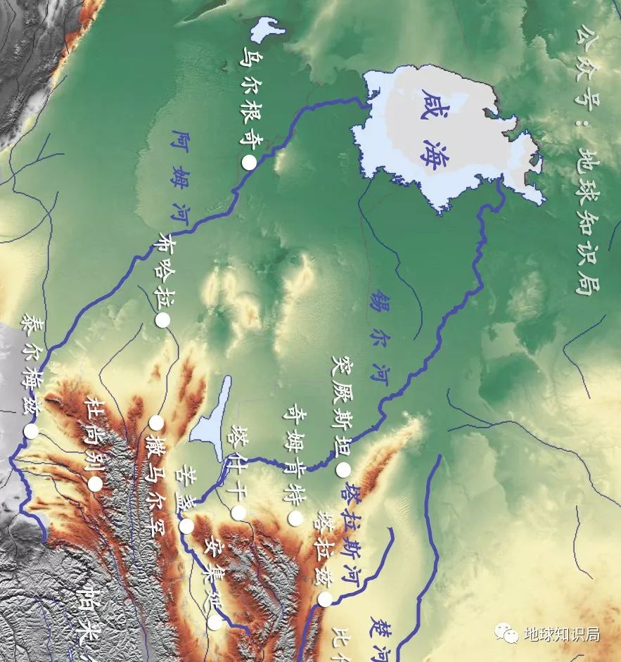(中亚国家主要城市基本在这些河流或其支流沿线)