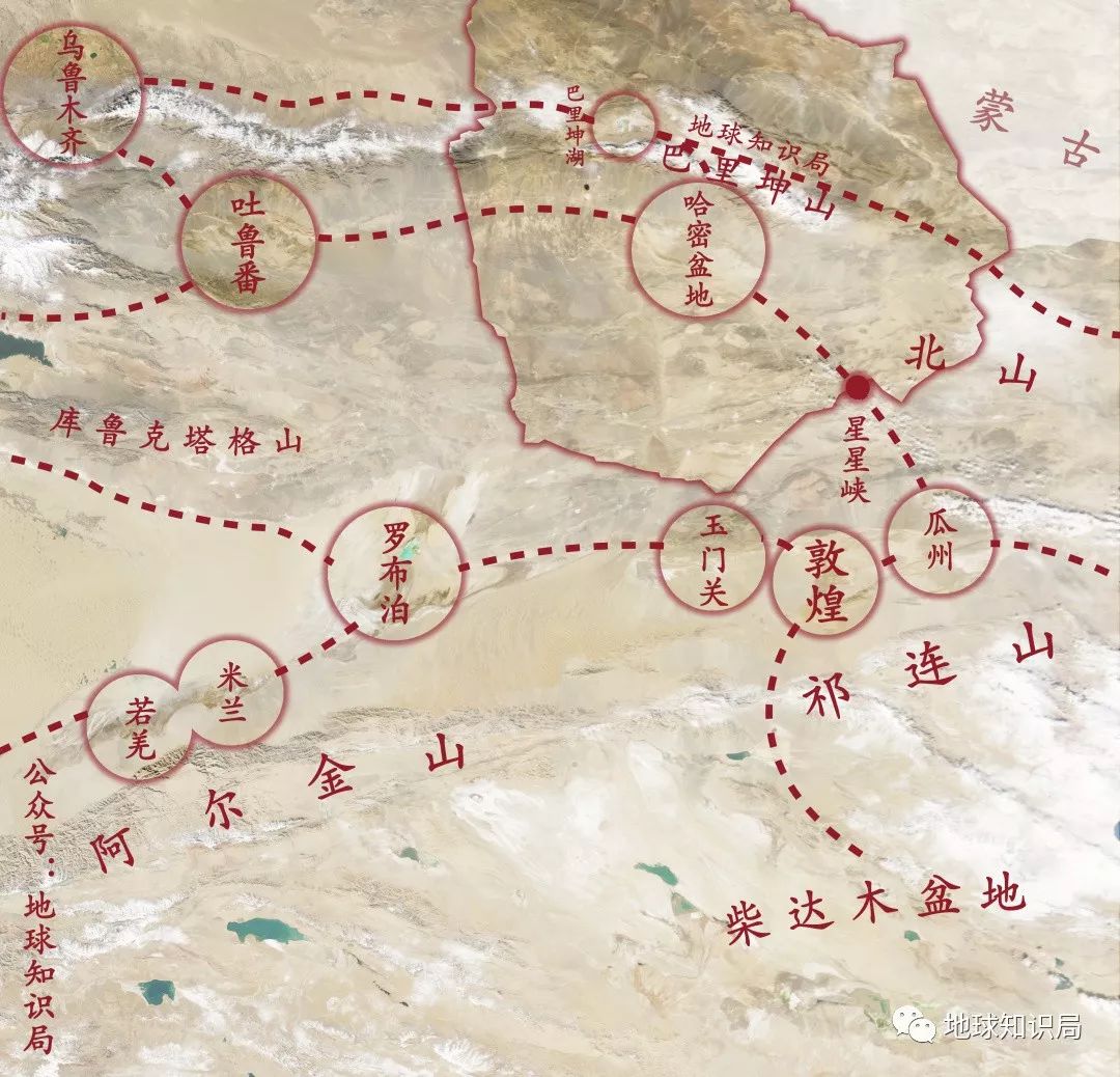 河西走廊入新疆的两条主要通道:哈密、罗布泊