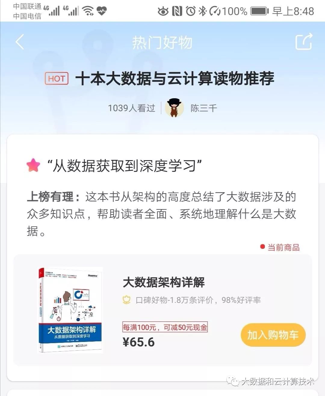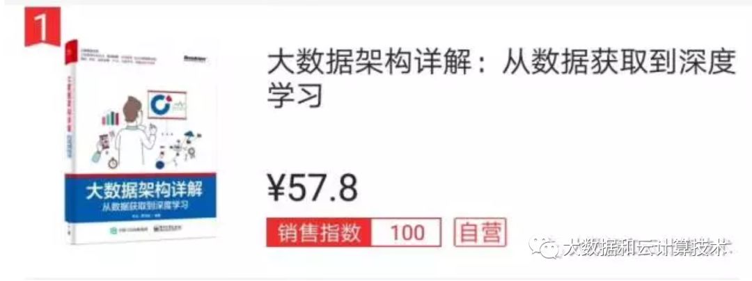 最近登录京东发现3年前的书《大数据架构详解:从数据获取到深度学习》还上了京东推荐榜,上榜理由是:这本书从架构的高度总结了大数据涉及的众多知识点,帮助读者全面、系统地理解什么是大数据。