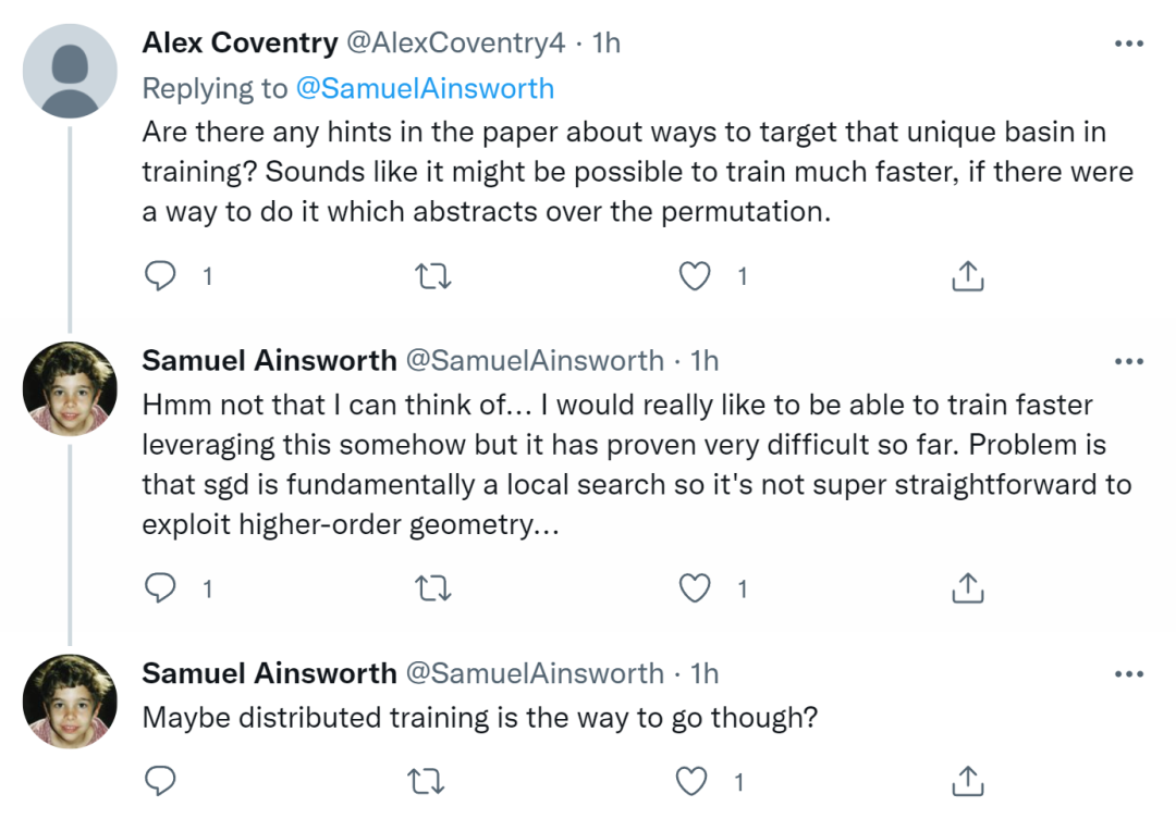 论文一作、华盛顿大学博士 Samuel Ainsworth 也解答了网友提出的一些问题。