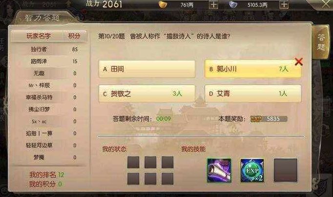 当然了,《问道》因为故事背景发生在上古神话时代,里面只有每日答题,文曲星答题。而答题玩得最炉火纯青、因地制宜的要数《梦幻西游》的科举考试,将游戏故事策划与我国传统历史以及游戏答题玩法完美结。从那以后,无数游戏开始竞相模仿。