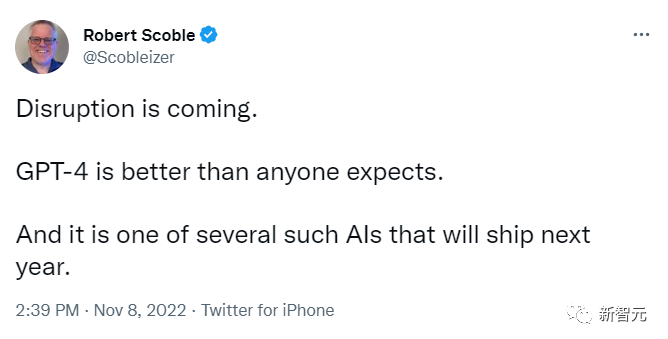 「颠覆即将来临。GPT-4比任何人的预期都要出类拔萃。它是将于明年推出的几大AI产品之一。」