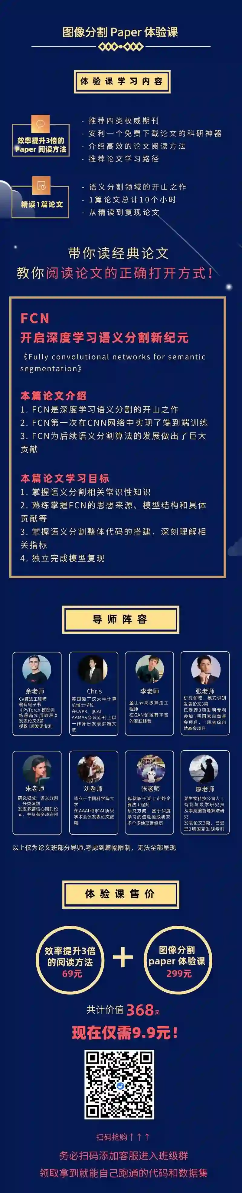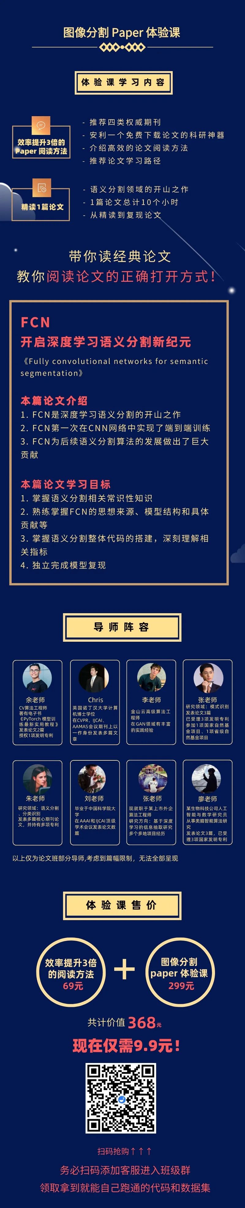 为了让大家在学习图像分割论文的过程中少走弯路、少踩坑,深度之眼推出图像分割论文精讲班体验课: