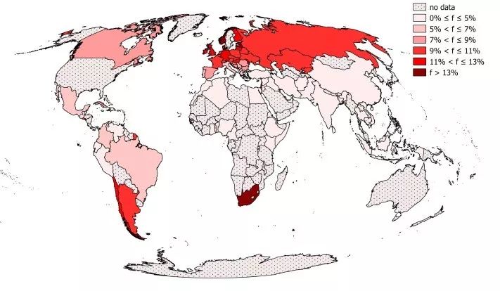 图片来源:Frequencies of gene variant CCR5-Δ32 in 87 countries based on next-generation sequencing of 1.3 million individuals sampled from 3 national DKMS donor centers