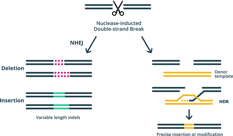 DNA双键断裂后的两种修复模式。图片来源:emendobio.com