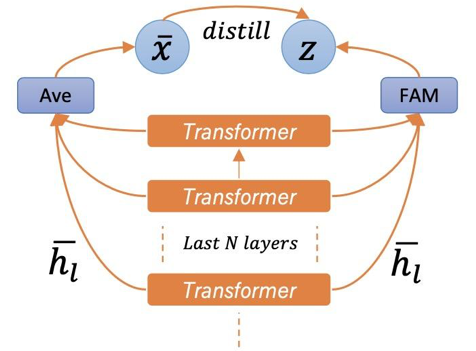 由于预训练模型不同层的特征具有的迁移能力不同 [6,7],为了能够达到更好的迁移效果,我们把多层的特征融合到一起。在 FAM 中,我们通过注意力机制来学习各层特征的权重,然后将乘上权重后的特征相加,作为 FAM 的输出。