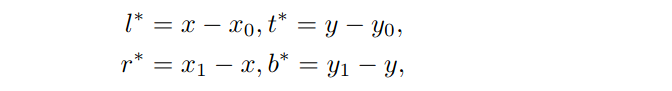 为了解决当预测的边界盒变得不可靠时,跟踪器会快速漂移的问题,我们引入了一种新的无锚回归来进行视觉跟踪。它将groundtruth边界盒中的所有像素都作为训练样本。其核心思想是估计目标对象内每个像素到groundtruth边界盒的四个边的距离。其中,设