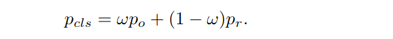 这一步使用所提出的网络来定位搜索图像中的目标。分类网络预测的两个概率po和pr通过权重ω进行加权: