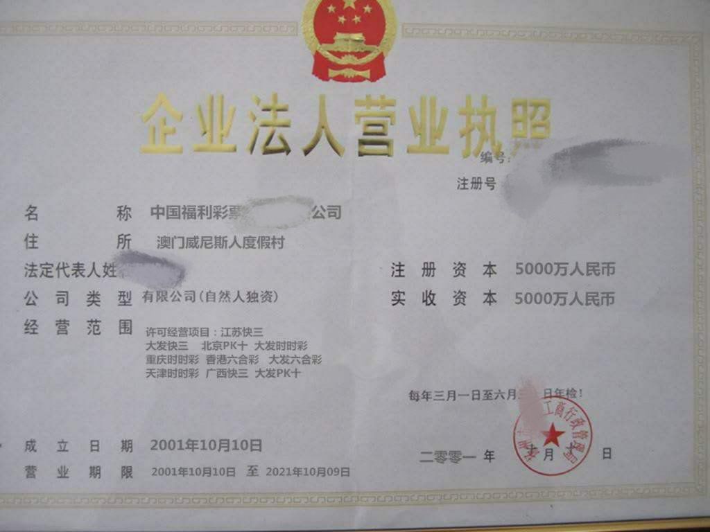 其中一家平台向我们提供了企业法人营业执照,上面的住所写着“澳门威尼斯人度假村”。