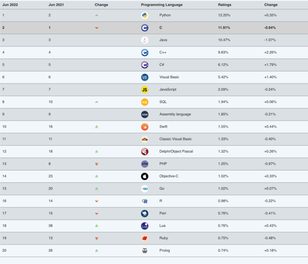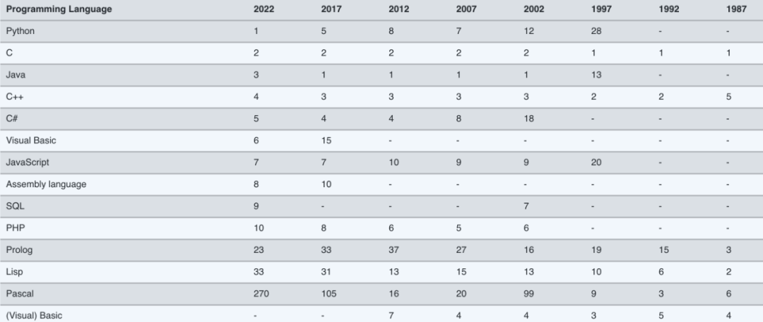 这个排行榜可以用来考察你的编程技能是否与时俱进,也可以在开发新系统时作为一个语言选择依据。