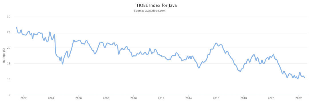 几年前我们还在谈论 Java 时往往以常青藤来形容,只是偶尔多一些“Java 老矣,尚能饭否”的疑虑,然而,随着时间的推移,这样的疑虑慢慢变成了肯定。