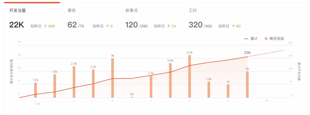 项目经理能够实时把握迭代具体进度,回顾项目效率、质量与稳定性,快速发现并响应瓶颈;