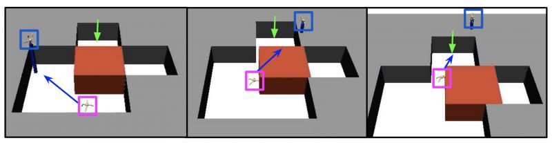 MLSH成功地实现了在模拟物理环境里,不仅让小蚂蚁能够爬行,而且还能够在迷宫内寻路: