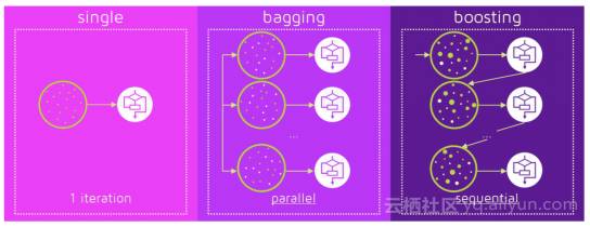 图2. Bagging (独立模式) 和 Boosting (顺序模式).