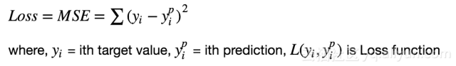 任何监督学习算法的目标是定义一个损失函数,并将其最小化。让我们看看梯度提升算法的数学运算。假设我们将均方根误差(MSE)定义为:
