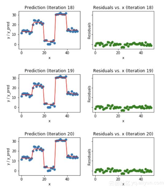 图6.梯度提升预测的可视化(第18次至第20次迭代)