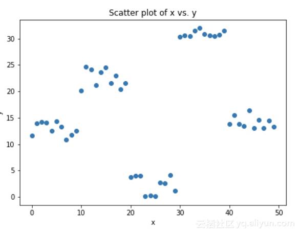 让我们思考下面的散点图中显示的模拟数据,其中1个输入(x)和1个输出(y)变量。