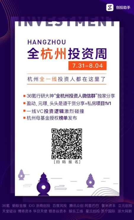 8月1日,创投助手“全杭州投资周新科技专场”正式开始!本次杭州站活动是创投助手“大中华区巡回路演”的第一站,之后将陆续在深圳、上海、广州、杭州、南京、成都、台北、新加坡等地举办线下投资周活动。带着创投圈最前沿的科技、最新的行业趋势、最好的投后项目,汇集顶尖投资机构的投资人,玩转各大城市。