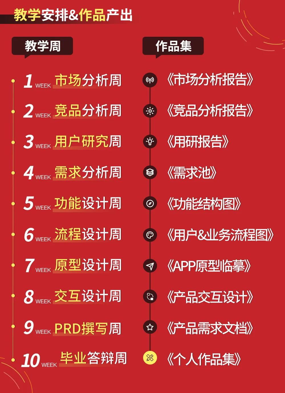 跟着老师的教学节奏学下来,可以累计一整套项目经验,具体到各个模块,除了掌握科学的方法,还能有实实在在的作品产出。