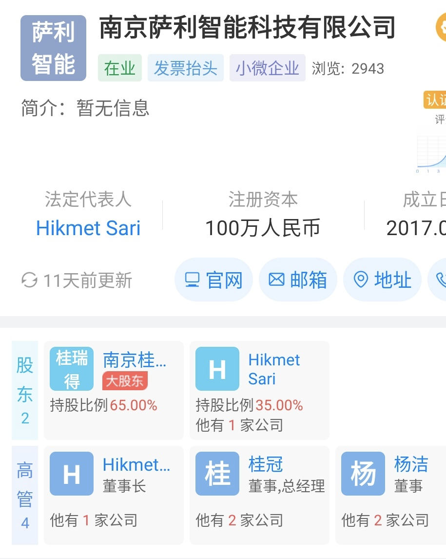 2017年,桂冠还和欧洲科学院院士Sari教授,共同成立南京萨利智能科技有限公司,专注于研发人工智能的边缘设备,如智能财务系统、智能水位监测项目系统、智慧工地安全检测系统和人工智能阅卷系统等。