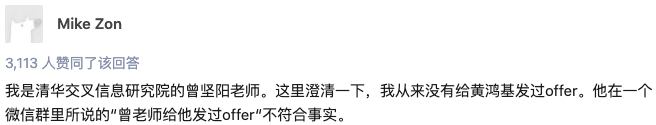 得到吴同学的学生卡之后黄用PS替换成自己的照片,并以吴同学的身份在清华以交流问题为由四处加好友。还谎称已被清华交叉信息研究院曾坚阳老师录取,随后曾老师已经在知乎上作出否认。