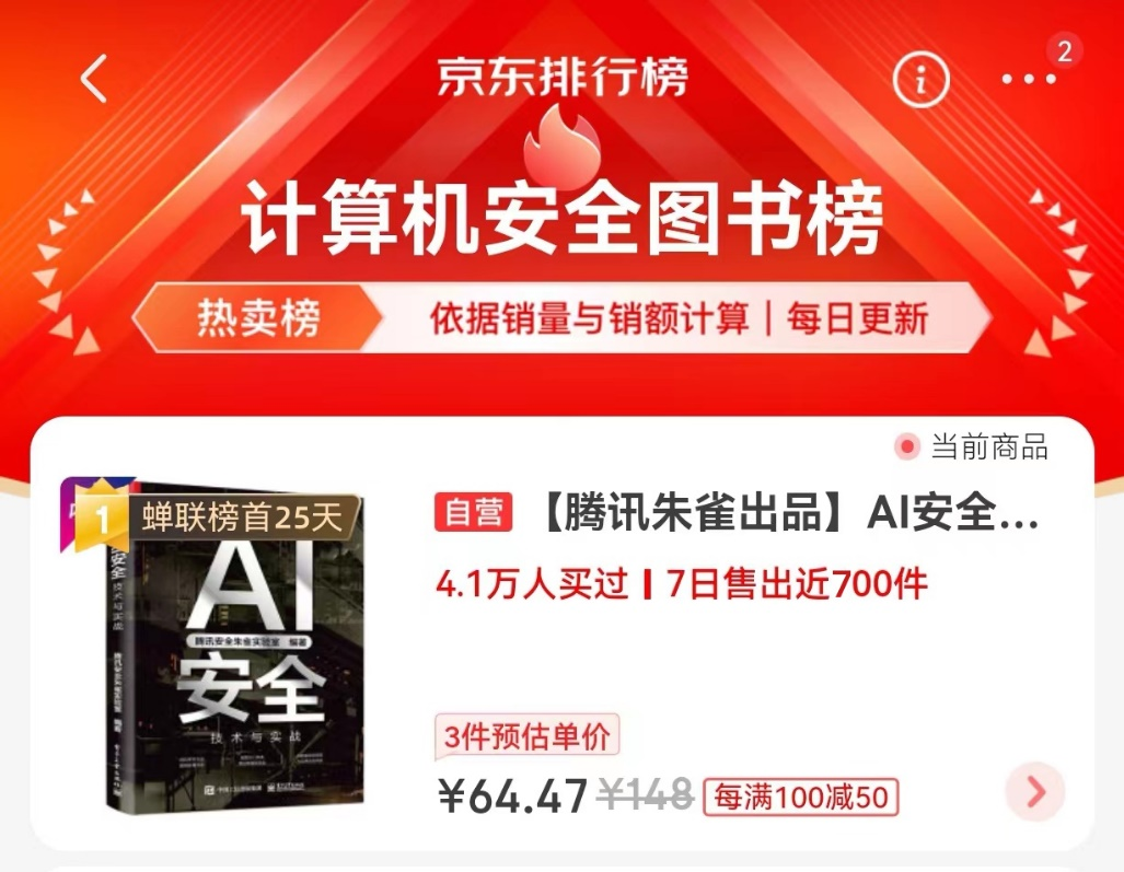 《AI安全:技术与实战》蝉联榜首25天