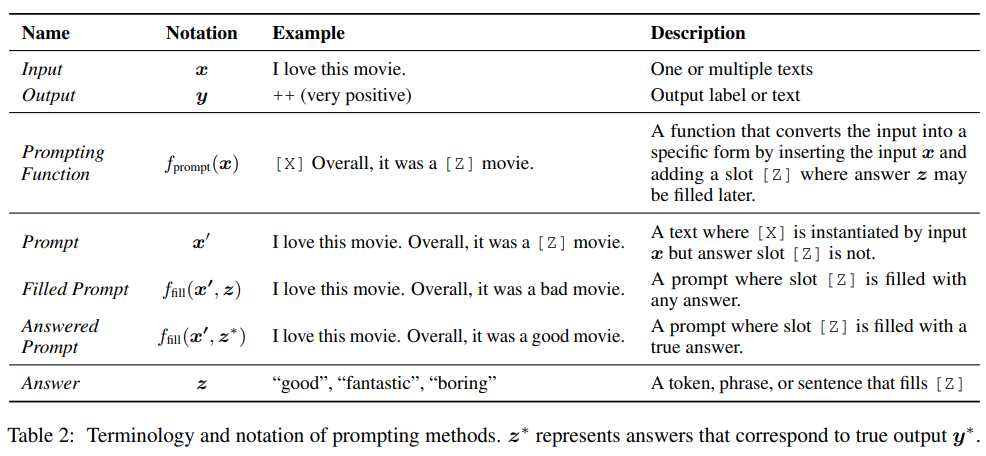 本节中研究者对最基本的 Prompt 形式进行了数学描述,其中包含许多有关 Prompt 的工作,并且可以扩展到其他内容。具体来说,基础 Prompt 分三步预测得分最高的 ^y,即 prompt 添加、answer 搜索和 answer 映射。