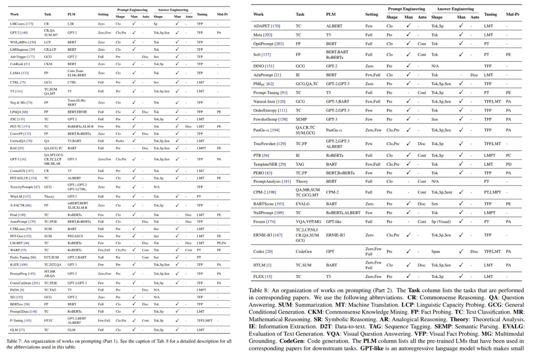 研究者总结了与 prompt 相关的主题,包括集成学习、少样本学习、更大规模上下文学习、查询重构、基于问答的多任务学习、可控生成、监督注意力和数据增强。
