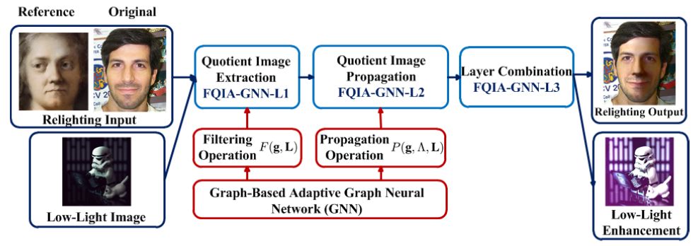 图1 能实现人脸光照生成与低光照图像增强的QIA-GNN框架