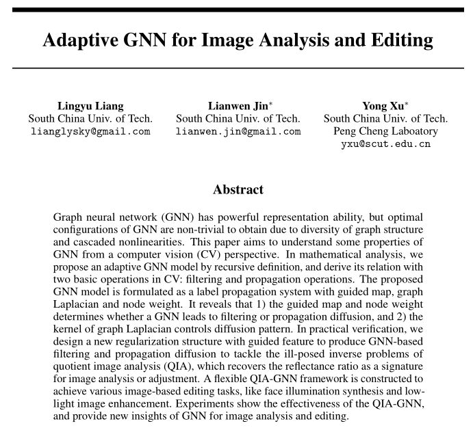 论文标题:Adaptive GNN for Image Analysis and Editing
